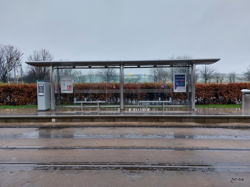 仕事の日を挟んで翌々日の2022.11.18の朝、未乗になっているエディンバラ空港までの残りの区間に乗車しました。まずはホテル近くのGyle Centreに向かいます。一昨日も雨でしたが昨日も雨で、今日も雨が降っています。